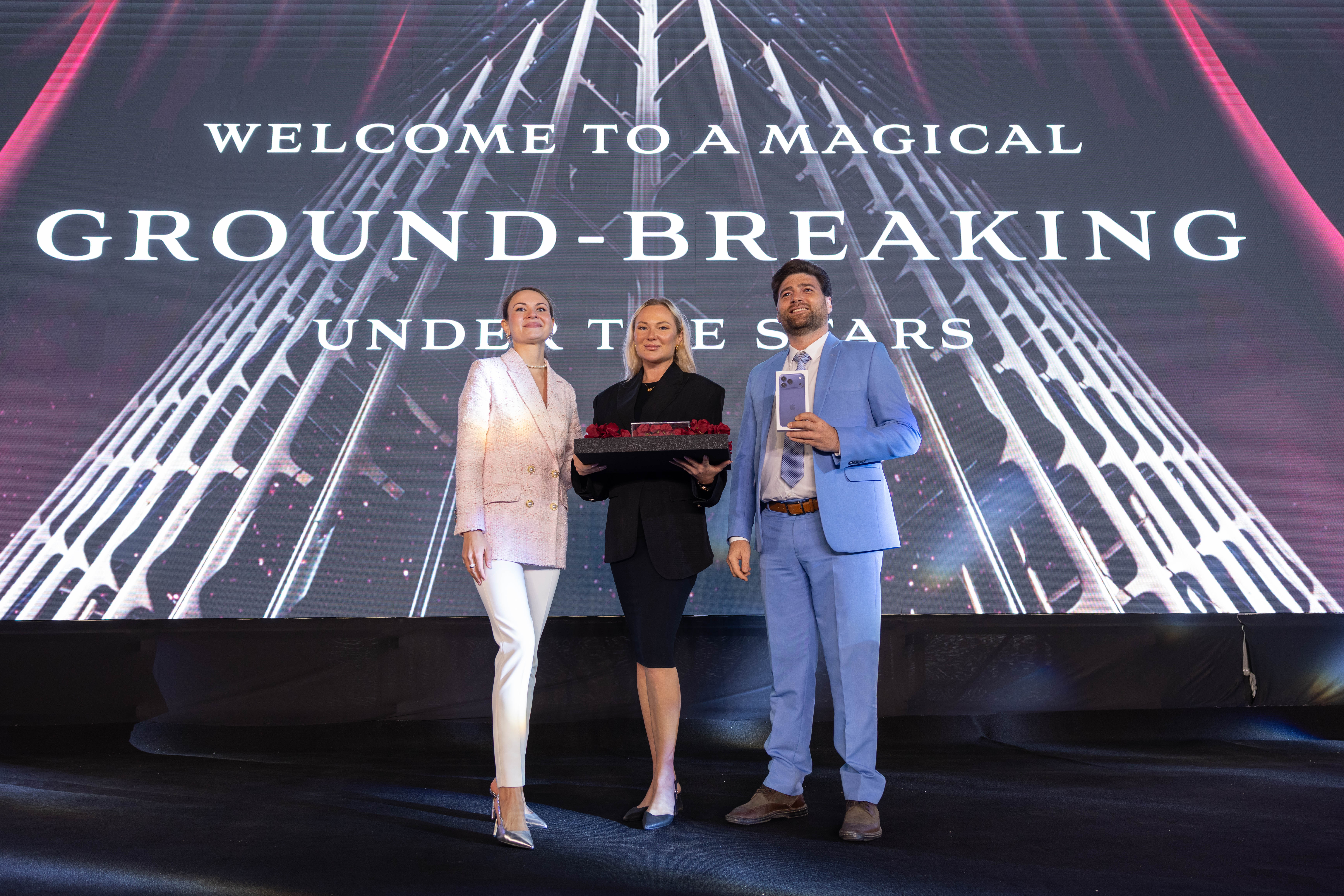 Mr. Masih Imtiaz led the ground breaking, setting the mood for a night filled with excitement and anticipation. A spectacular drone show soon followed, lighting up the Dubai skyline and capturing the spirit of the project in a memorable way.